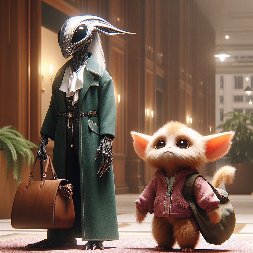 Due delegati alieni in procinto di partecipare alla Conferenza di Pace del 2084. Da notare come abbiano deciso di vestire abiti di foggia umana per dimostrare anche in via indiretta la loro volontà di integrarsi alle abitudini umane.
